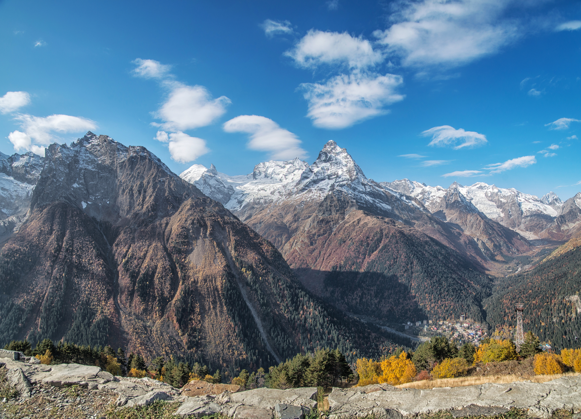 Курортный поселок Домбай покорит вас захватывающими дух видами на величественные горы с заснеженными вершинами и ледники, свисающие с мощных глыб массива Джугутурлючат. Кроме того, вы увидите ущелья Алибек, Домбай-Ульген и Аманауз, словно змейки разбегающиеся у самого подножия гор. Подниметесь по канатной дороге на пик Мусса-Ачитара, отдохнете за чашечкой горного глитвейна и рассмотрите с высоты 3200 метров Кавказский хребет и реку Птыш.